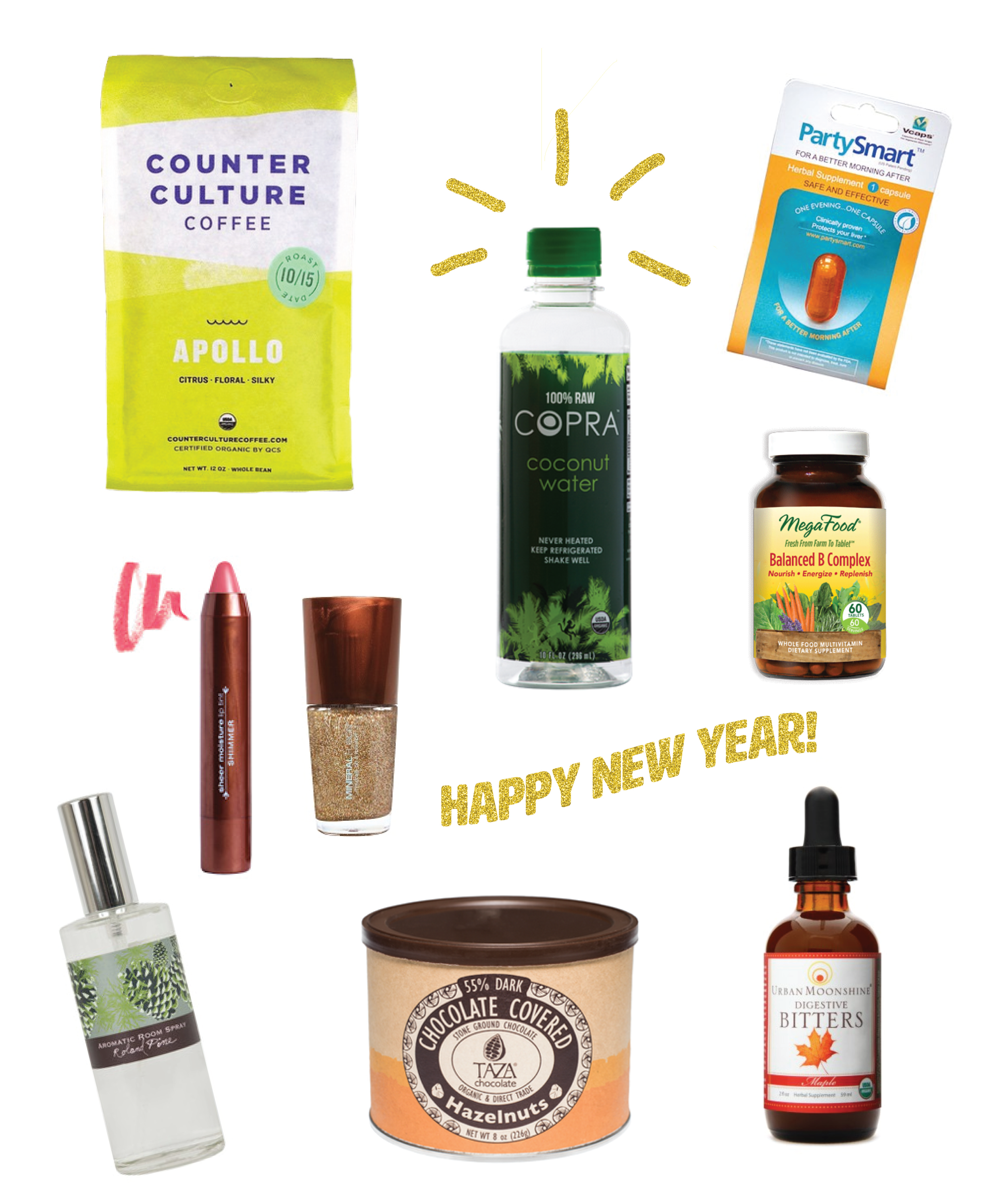 Megafood Balanced B-Complex, Himalaya PartySmart, and Copra Raw Coconut Water: Planning on having a wild NYE night? Protect yourself from self-loathing the next morning with these two staff favorites for hangover cures. Megafood's food-based B Complex and Himalaya's PartySmart will support your depleted system, while Copra's delicious raw coconut water is the perfect hydrating beverage, giving you lots of potassium and electrolytes. Ring in the New Year on a healthy, happy note!